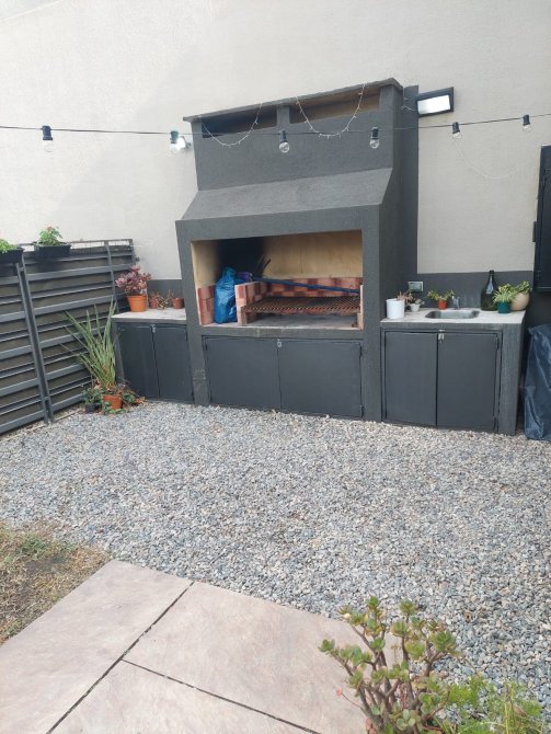 CONSTA DE UN AMPLIO ESPACIO DESCUBIERTO DE USO EXCLUSIVO DISPUESTO AL FRENTE DE LA VIVIENDA EN EL CUAL SE HALLA EL ESPACIO PARA COCHERA, Y PATIO LIBRE CON PARRILLA CON MESADA AUXILIAR Y BACHA.