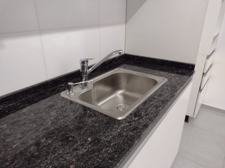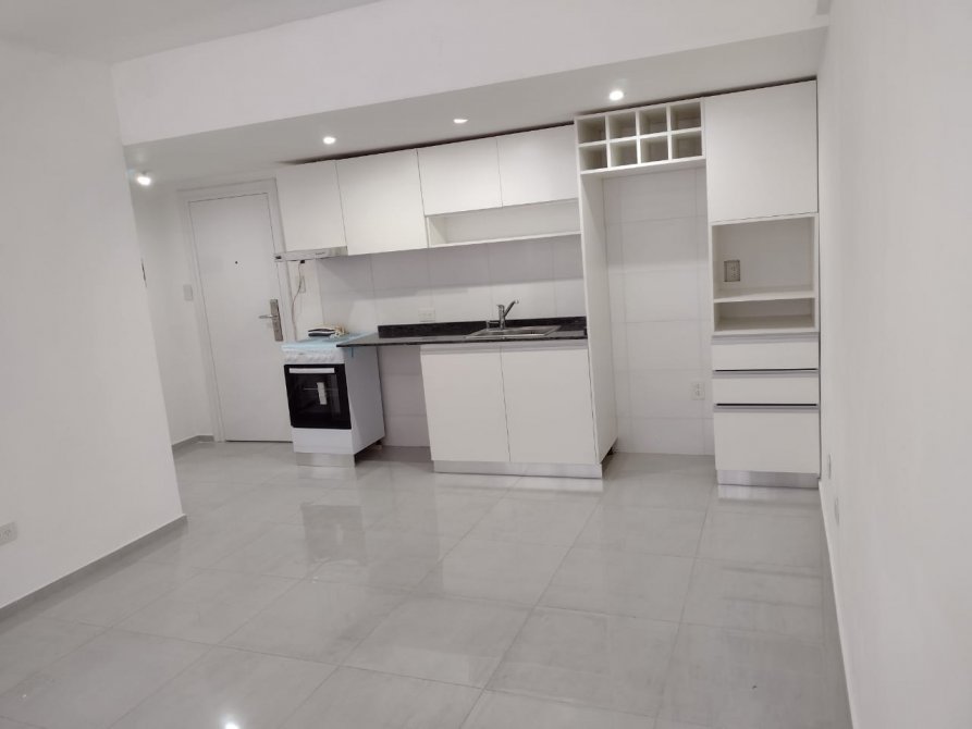 SE ENCUENTRA EN UN PRIMER PISO AL CUAL SE ACCEDE POR ESCALERA, INGRESANDO A UN LUMINOSO HALL EN CUYO EXTREMO OPUESTO SE UBICA EL INGRESO A LA UNIDAD, A TRAVÉS DE UNA SÓLIDA PUERTA DE SEGURIDAD CON ANCLAJE MÚLTIPLE, QUE NOS INTRODUCE A UN PEQUEÑO ESPACIO DISTRIBUIDOR. A LA IZQUIERDA SE ENCUENTRA EL LIVING COMEDOR CON VISTA AL FRENTE (CALLE SEGUÍ), PISO DE PORCELANATTO Y COCINA INTEGRADA, LA CUAL CUENTA CON GENEROSO AMOBLAMIENTO COMPLETO BAJO MESADA Y ALACENA, COMPARTIMIENTO PARA HELADERA Y COLUMNA PARA MICROONDAS CON CAJONERA, TODO DE MELAMINA BLANCA CON PERFILERÍA DE ALUMINO. MESADA DE GRANITO CON BACHA DE ACERO CON DISPENSER DE DETERGENTE INCORPORADO Y GRIFERÍA MONOCOMANDO.